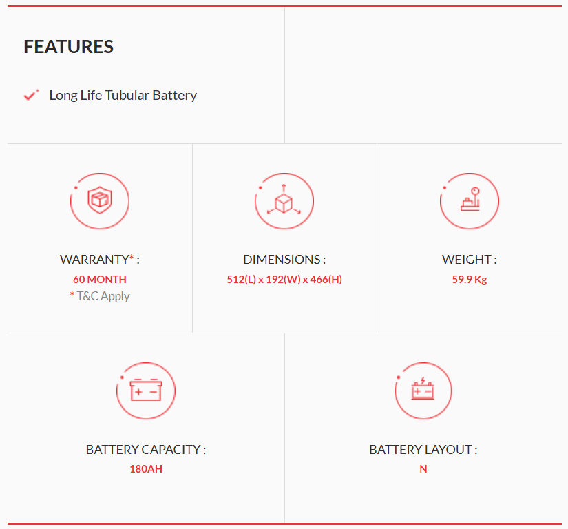 EXIDE INVAMASTER IMTT1800 (180AH LONG LIFE TUBULAR BATTERY)