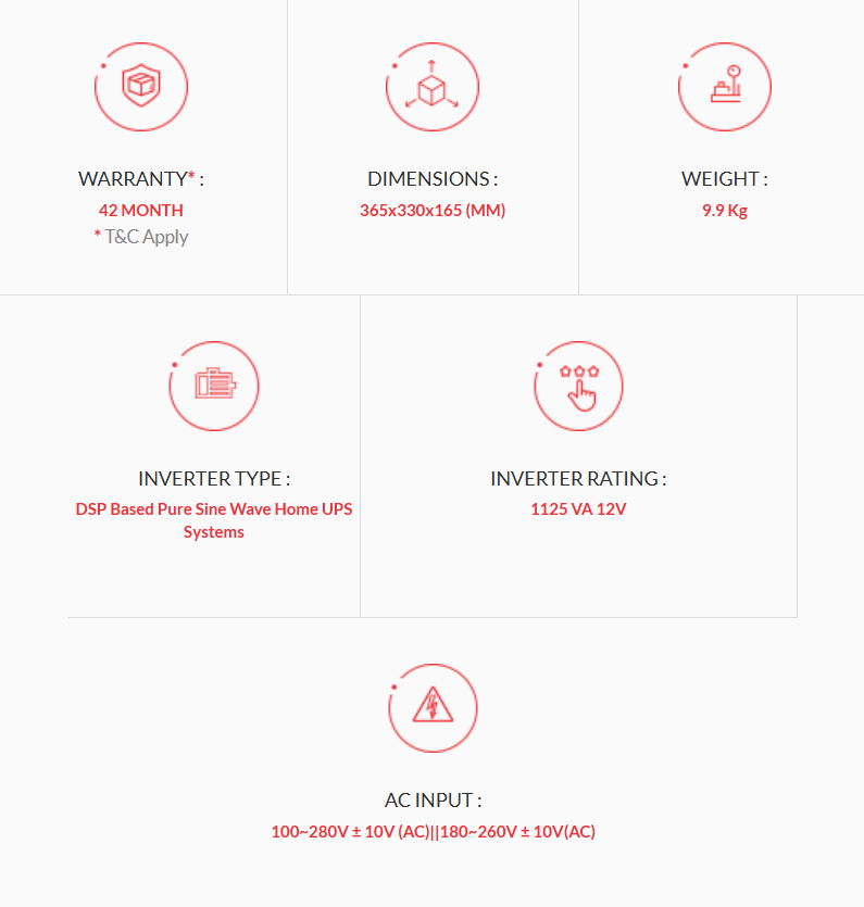 Step up your power backup with the EXIDE INVERTERZ GQP1125, a robust and intelligent pure sine wave inverter built to handle higher loads with maximum efficiency. Perfect for homes and small offices, this 1125VA inverter ensures smooth performance, protection for your devices, and extended battery life.